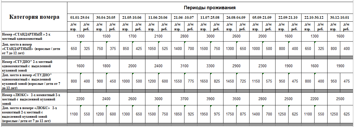 Сумма предоплаты составляет не менее 20 % от общей стоимости номера за весь период отдыха.